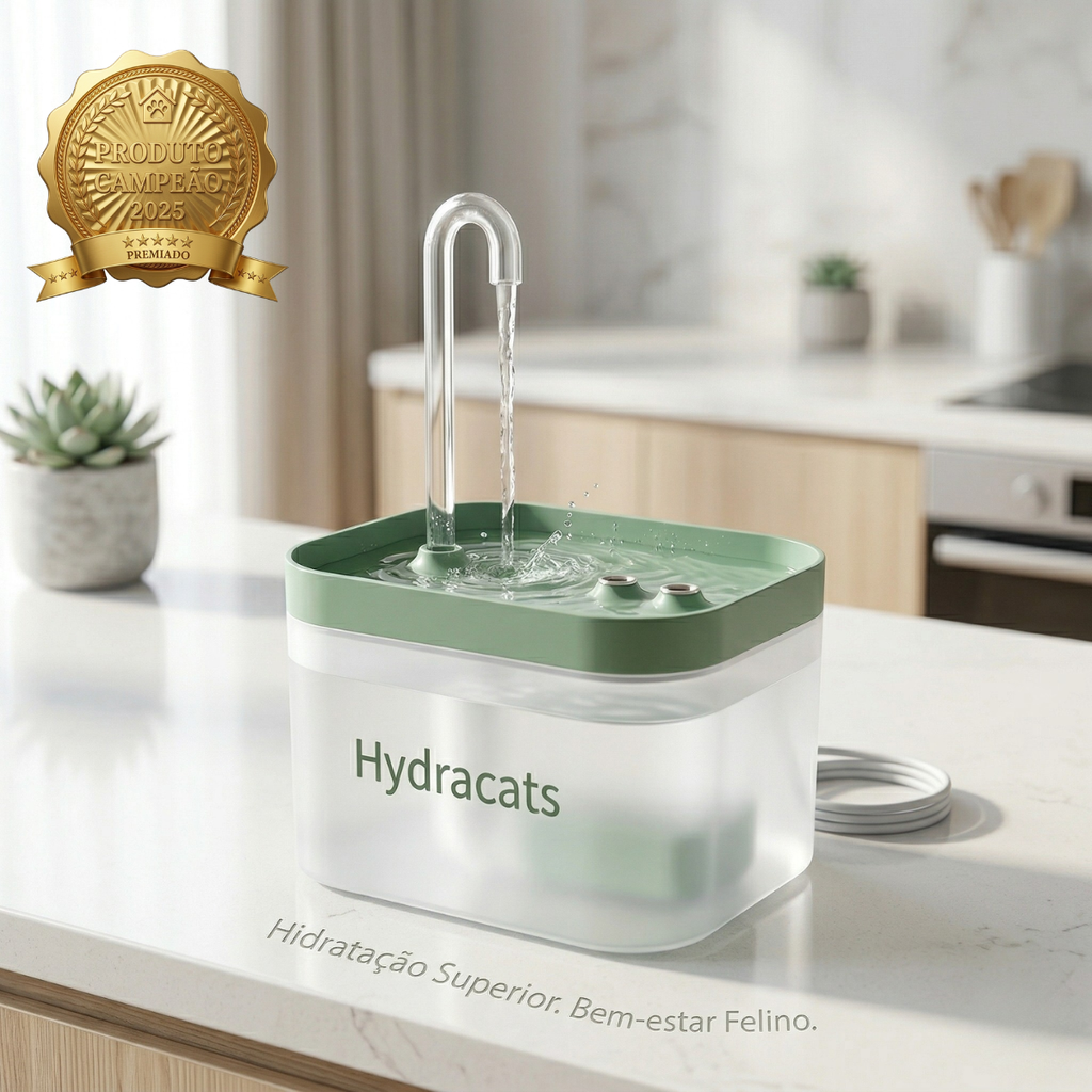 Com água em movimento, design inteligente e uma experiência mais atrativa, a HydraCats torna a hidratação mais natural, frequente e agradável no dia a dia do seu gato.