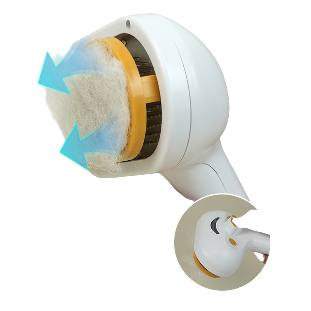 Recolhe pelos e sujeiras facilmente e os remove com o pressionar de um botão, sem precisar tocar nas cerdas. -