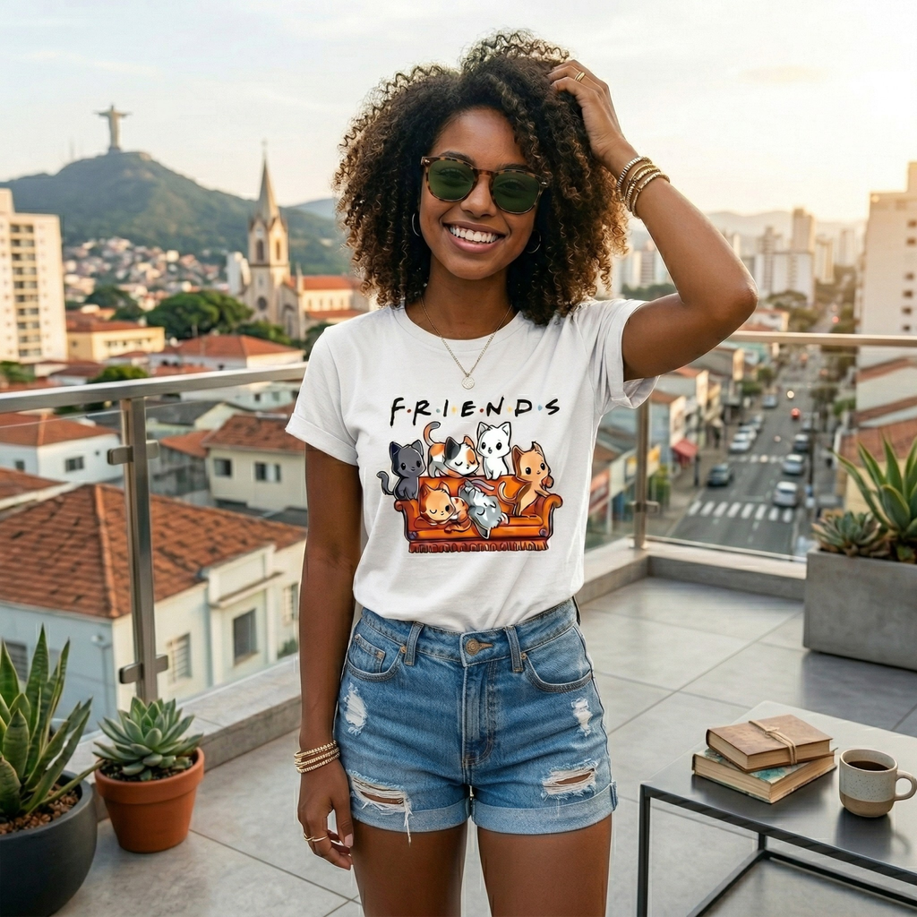 Camiseta Gatinhos No Sofá Friends - 100% Algodão